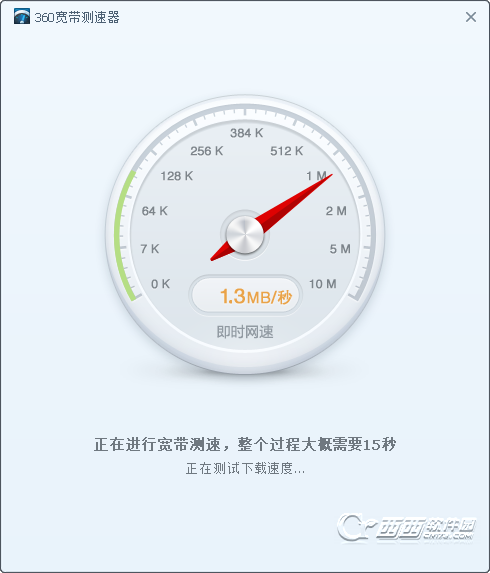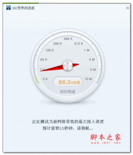 正在进行宽带测速,整个过程大概需要15秒,然后会如下图返回您的当前网速 宽带接入速度。