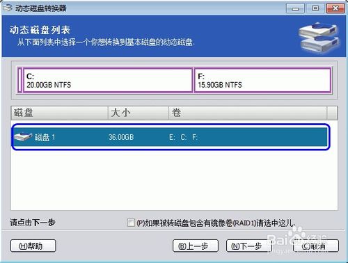 5、这一步要在底下方框中打钩,然后执行,这样就可以成功的转换为普通磁盘。