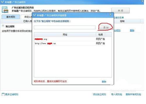 打开金山毒霸的广告过滤——自定义规则——右下角的添加独立规则——输入网址——添加——然后确定,没有确定的把窗口叉掉(注意不要关闭广告过滤功能