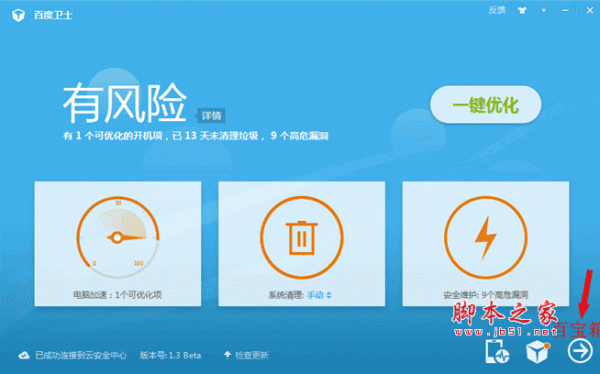 3、首先,需要把百度卫士升级到4.1版本,因为只有这个版本才有相应的金币奖励,才可以换取相应的东西,所以先把你的百度卫士升级到最新版本吧。
