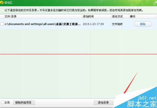 4、在信任区页面上找到找到右下方工具栏里的添加文件按钮,左键双击打开该页面。