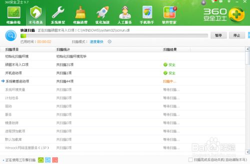 4、点击快速扫描,则扫描系统内存、开机启动项等关键位置,快速查杀木马。