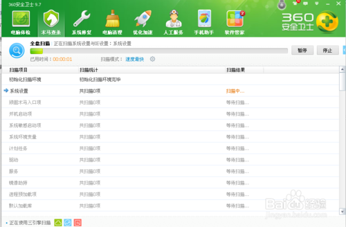 6、点击全盘扫描,则扫描全部磁盘文件,全面查杀木马及其残留。