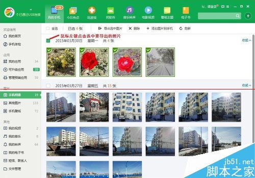 5、鼠标左键点击勾选要导出的手机照片。