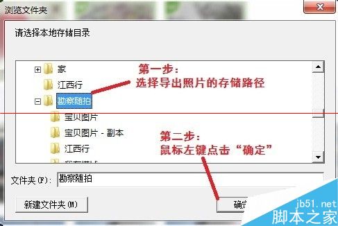7、为导出的照片选择存储的路径,然后用鼠标左键点击“确定”开始导出照片。