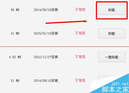 6、点击想要卸载的软件右侧的“卸载”选项即可。如果软件没有被完全清理,可以根据提示,选择彻底清理后,完成软件卸载。