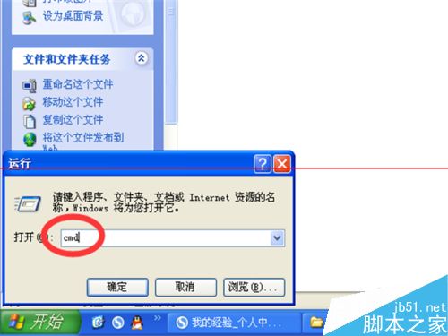 3、在弹出的运行的对话框架中输入指令cmd,然后点击回车,或者点击下方的确定按钮。
