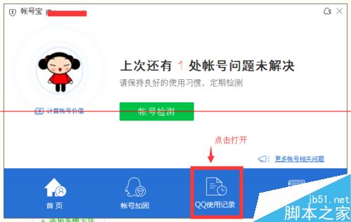 3、在账号宝界面的下方点击打开“QQ使用记录”。