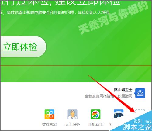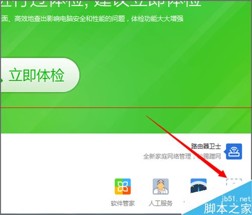 7、在这个界面中,我们如果想把软件管家和人工服务及宽带测速器换成其它比较常用的启动图标的话,我们在它的图标后面点击更多。