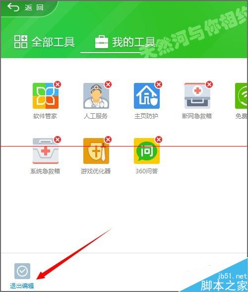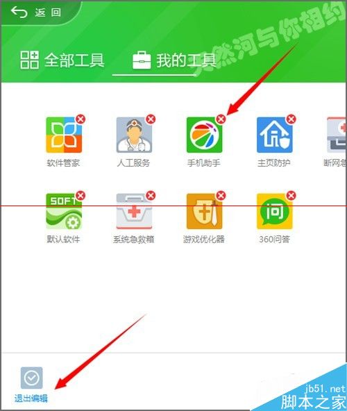 3、当我们点击了编辑之后,可以看到在每一个图标上的右上角可以看到一个红色的叉叉。只有是在编辑的状态下,这些工具的右上角才会显示出来删除的标记。如果我们想要删除其中的某一个工具的话,可以直接点击它右上角的删除标志。