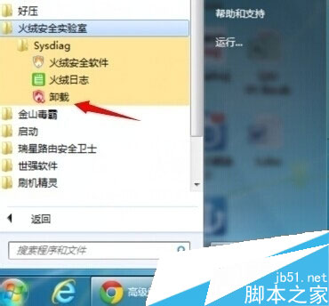 1:大多数的软件都会带上一个卸载的工具火绒互联网安全软件也不例外,点击开始菜单---【火绒安全实验室】-----【Sysdiag】----【卸载】