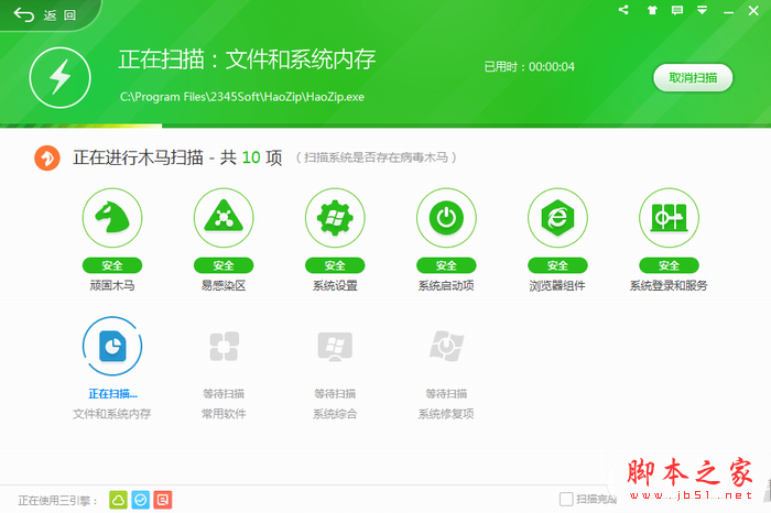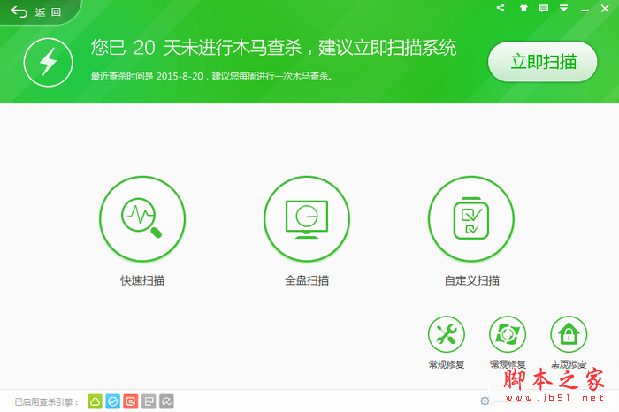 如果正常我们的电脑没有提示报毒之类的话,我们一般选择快速扫描就可以了,如果你感觉电脑有病毒之类就选择全盘扫描速度比较慢,但是扫描比较干净。