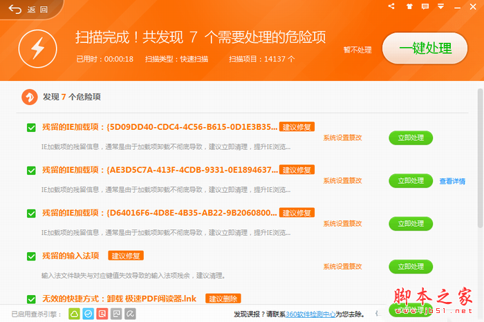 你看一下,需不需要处理,要处理的选择立即处理,如果都需要处理点击一键修复就可以了,如下图: