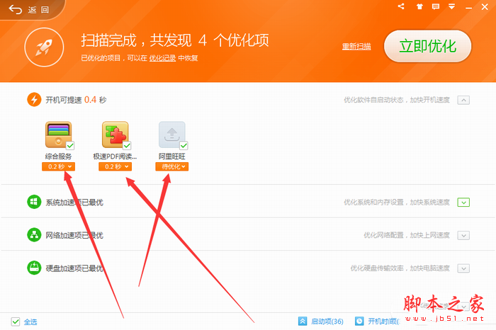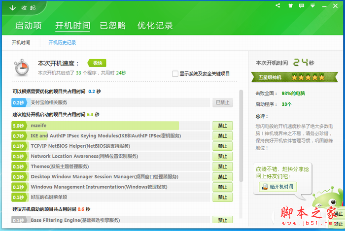 这边可以自己选择不必要开机启动项目禁止掉,可以加速开机启动时间