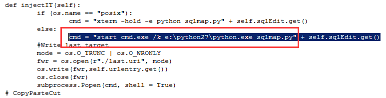 cmd = “start C:\Windows\System32\cmd.exe /k C:/Python27/python.exe sqlmap.py %s”