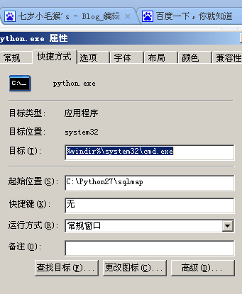 选中文件sqlmap.py 右键创建桌面快捷方式 ,点击快捷方式属性