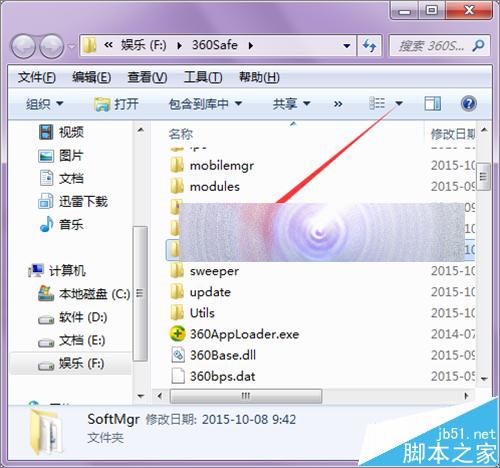 3、接着在打开的文件位置中,它默认的是在它的启动程序上。我们找到列表中的SoftMgr的文件夹。