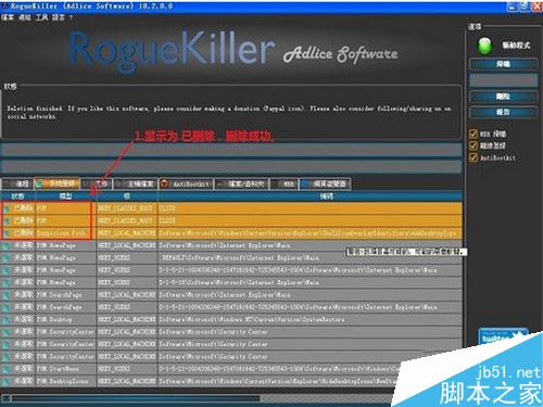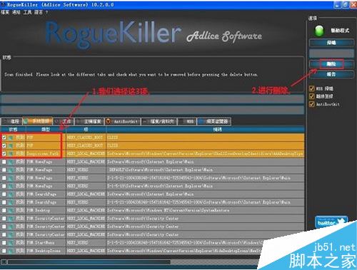 再强调一下,预扫描只自动清理进程中的流氓/恶意软件,其他项目中,要扫描后才会显示,才能手动删除。是不是很简单呢?想了解更多精彩教程请继续关注脚本之家网站!