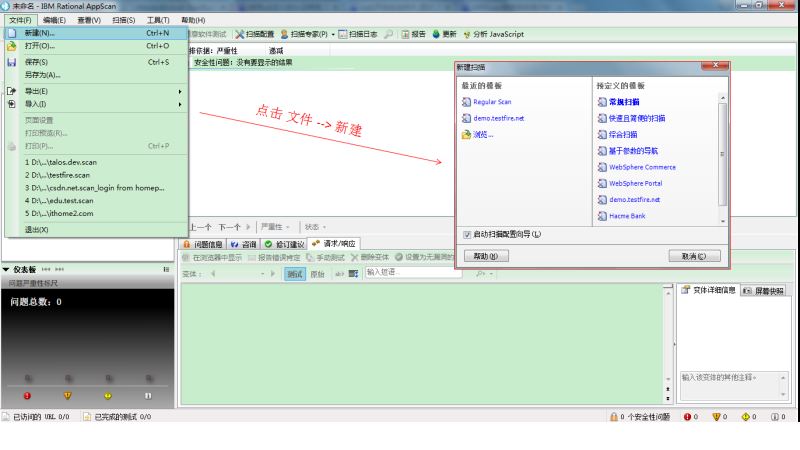 一、打开AppScan软件,点击工具栏上的 文件–> 新建,出现一个dialog,如图所示: