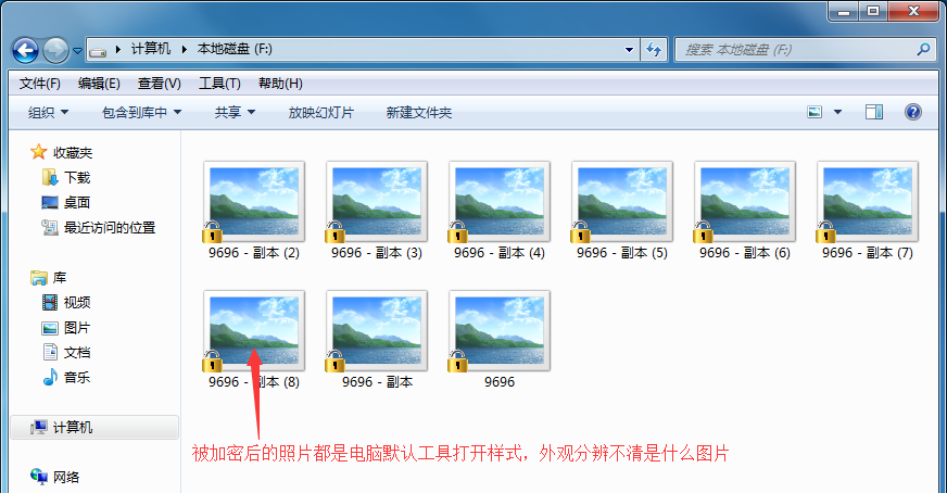 3、这里需要注意的是,只要是加密过的图片文件就会是电脑默认工具打开样式,如图所示,从外观时看不到图片内容的,这也是防止截图的效果。
