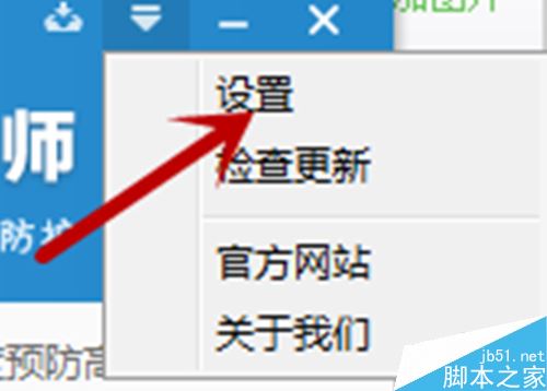 之后在主菜单弹出来的选项中,点击”设置“对鲁大师参数等设置