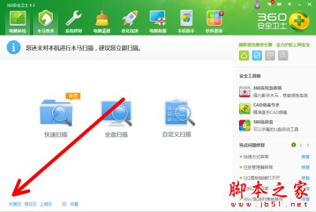360安全卫士是一款由奇虎360公司推出的功能强、效果好、受用户欢迎的安全杀毒软件,小伙伴们在进行查杀的时候错误的将自己需要的文件进行查杀了,不知道怎么进行恢复,下面脚本之家小编带来了360安全卫士恢复误杀文件教程,希望对大家有所帮助。