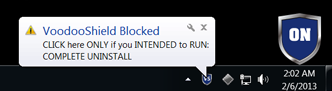否则,如果voodooshield块出蓝色,然后就忽视它,认为它是一个病毒或恶意软件。