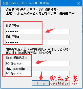 3、设置GiliSoft USB Lock密码,当您需要打开该程序需要输入密码(保护程序不被未经授权的用户设置)。注:此密码一定要记住,每次登陆本软件均输入此密码。