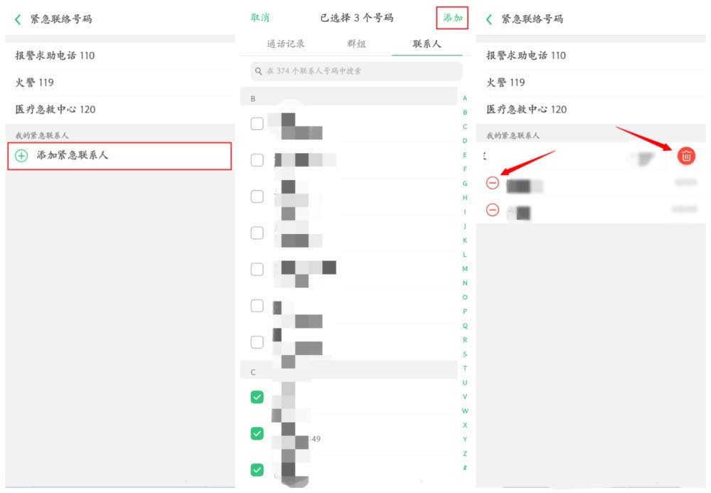 2、点击【紧急联络号码】进行相关添加操作即可进行添加/删除。
