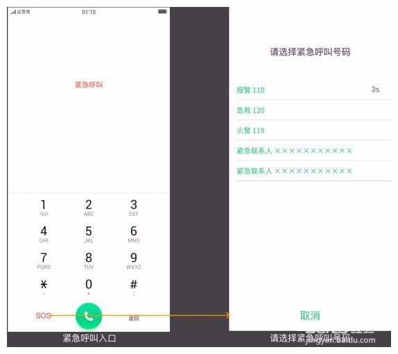 3、锁屏界面紧急呼叫--SOS界面图示: