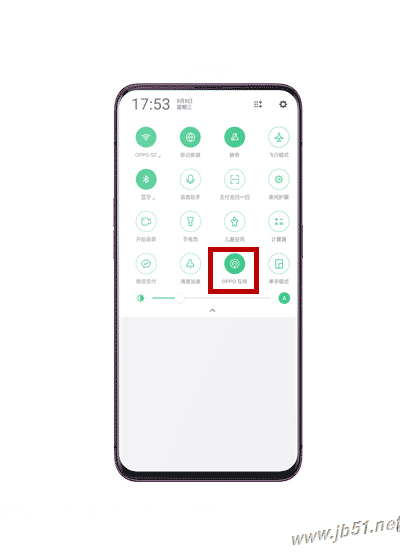 1、下拉顶部菜单,打开传输方手机的【oppo互传功能】,如图所示。