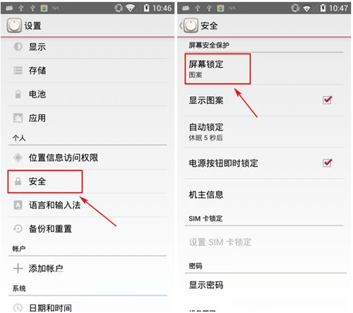 1)进入手机“设置”,在“设置”页面找到并进入“安全”,然后再点选“屏幕锁定”。(如下图)