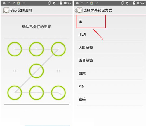 2)进入后,确认自己的手机密码,在确认无误后,选择“无”,这样,就轻松解除美图手机2的屏幕锁定了。(如下图)