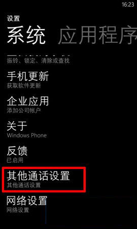 1)打开诺基亚1020手机的“设置”,然后找到并点击“其它通话设置”。(如下图所示)