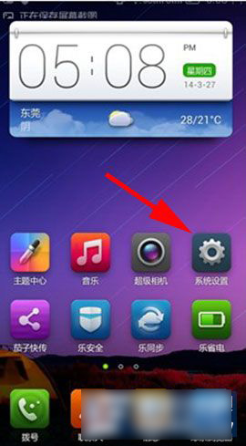 1)打开手机主屏幕,点击“系统设置”,然后选择“特色设置”,最后在甩动锁屏那里开启即可。(如下图所示)