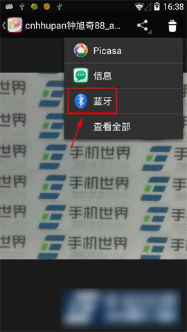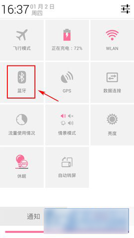 1)打开“通知栏”,然后点击“蓝牙”,选择自己想传输的相册或者音乐;(如下图所示)