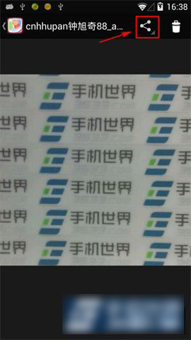 2)进入相册预览界面,点击右上角“分享”按键,然后点击“蓝牙”即可。(如下图所示)