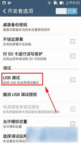 3)返回设置就可以看到“开发者选项”这个功能了,点击进入“开发者选项”,然后在“USB调试”中点击开启,就可以连接到电脑上了。(如下图所示)