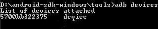 3.为了测试一下您的ADB工具是否配置成功,可以在命令行中输入adbdevices。如果在出现类似下图的界面,证明ADB已经配置成功,且驱动安装成功。