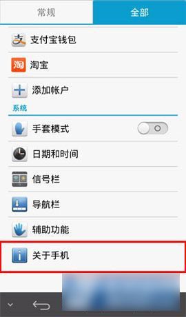 1)首先进入华为Ascend P7的设置,进入设置后点击“关于手机”。(如下图所示)