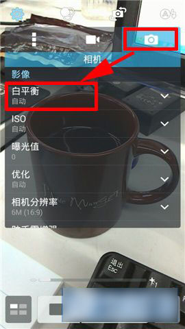2)在设置界面选择“相机”栏,然后点击“白平衡”,在里面有几种模式,选择一种适合现在环境的模式就OK了。(如下图)