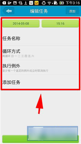 1)首先下载安装并打开定时达人,点击下方的“添加新任务”,然后按要求设置选项,上方的是任务启动的日期和时间,“任务名称”就是该任务的名称,“循环方式”是你可以选择启动的循环方式,比如只一次或特定星期几等等,“执行例外”是指出现什么情况就停止该任务,“添加任务”是指要执行什么任务,比如本文要说的——“关机”(PS:关机是需要ROOT权限的,安卓手机ROOT方法戳这里)。(如下图)