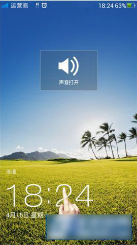 1)OPPO Find 7快速静音方法一:只需在Find 7锁屏界面下双击【时间】,然后就出现声音打开点击后就会出现声音关闭。(如下图)