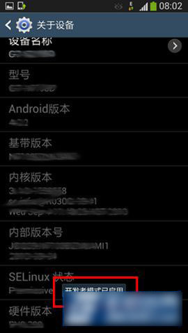 2)找到【内部版本号】并连续点击,直到出现【开发者模式已启动。(如下图)