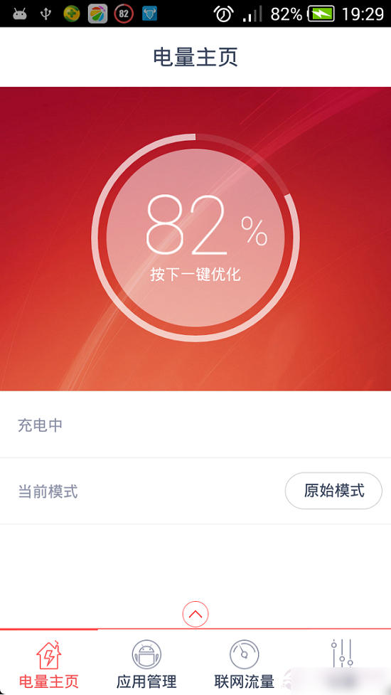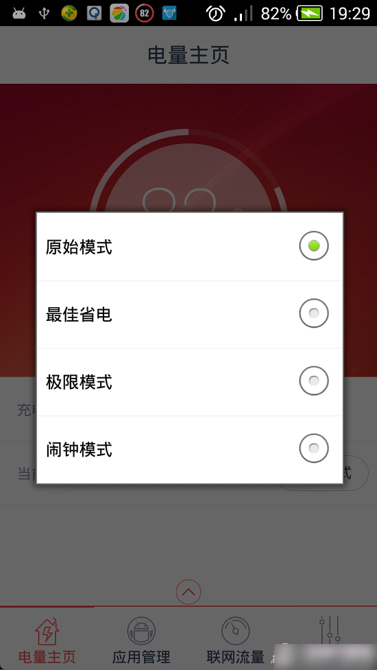 二、点击下面的“原始模式”调出四种模式的自选窗,可跟据你目前的使用来选择省电的模式,当前默认的是原始模式,从上到下四处模式一个比一个省电。