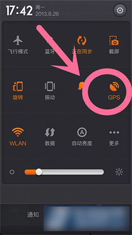 1)首先下拉手机通用菜单,然后点击GPS选项并打开该选项。(如下图所示)