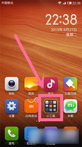 2)然后在桌面上找到【小工具】的文件夹,并且从【小工具】点击进入【指南针】。(如下图所示)