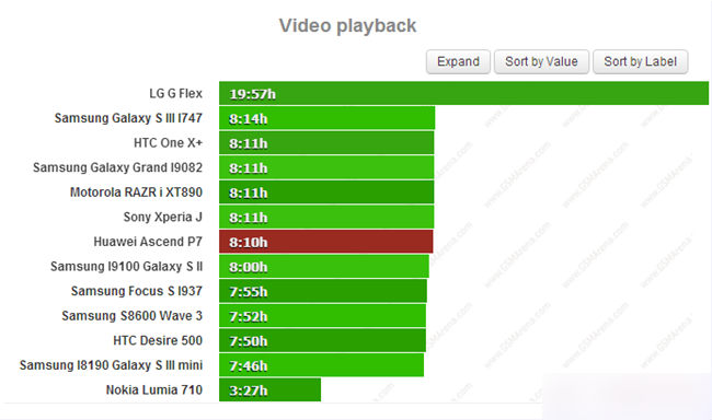 视频播放方面P7的表现就有些不尽人意了,只能坚持8小时10分钟,表现和HTC One X+类似。