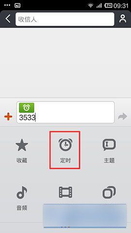 2)输入短信内容,然后在左下角的“+”点击进去,找到“定时”的按钮。(如下图所示)
