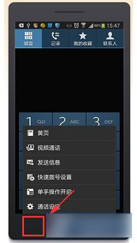 1)首先在主页面点击【手机】,然后点击左下角的实体菜单按键,并且选择【通话设定】。(如下图所示)